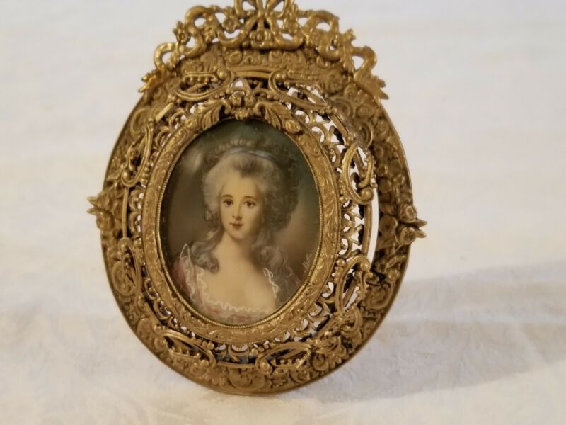 ANTIQUE PAINTED ON CELLULOID PORTRAIT PICTURE FRAME