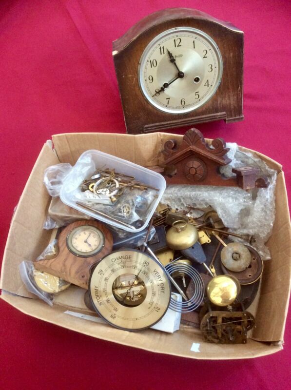 JOB LOT Antique Old Clock Parts,Movements,Glass,Gongs,Pendulum,Clockmaker Bundle