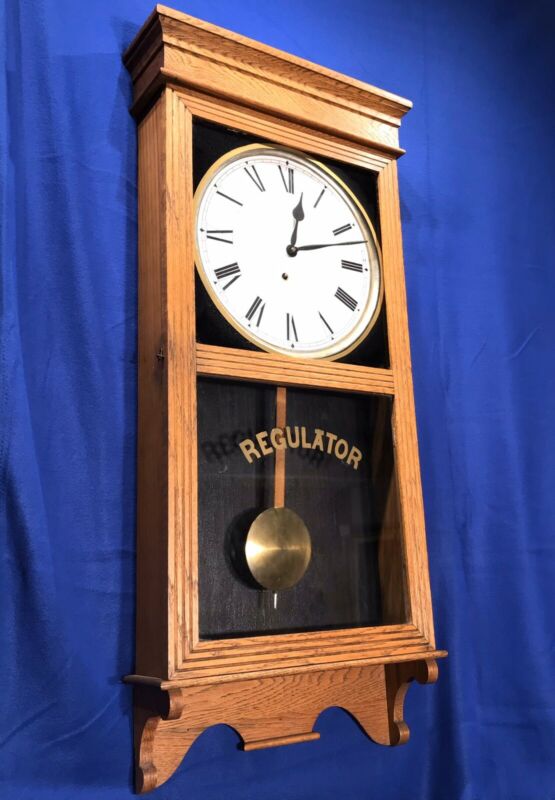Title (ebay affiliate link): VINTAGE ANTIQUE E.INGRAHAM BRISTOLCT WALL CLOCK WITH OAK CASE AND BRASS PENDULUM