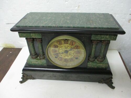 Title (ebay affiliate link): Antique 1880s Seth Thomas #102 Mantle Clock Faux green Marble pillars & lions