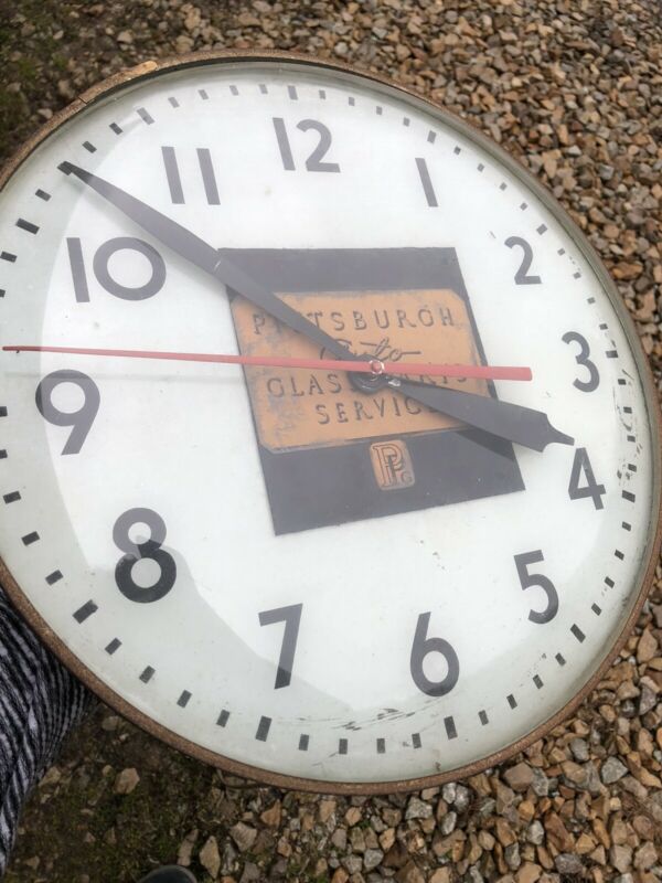 Title (ebay affiliate link): Antique Vintage Wall Clock Auto Glass Parts Store Pittsburgh PA PPG