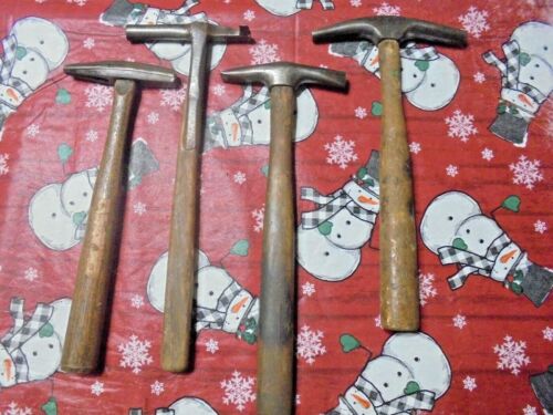 LOT OF 4 SMALL VINTAGE HAMMERS -TACH -STRAIGHT & CROSS PEEN -STRAPPED -OLD TOOLS