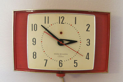 ANTIQUE VINTAGE RED TELECHRON KITCHEN WALL CLOCK