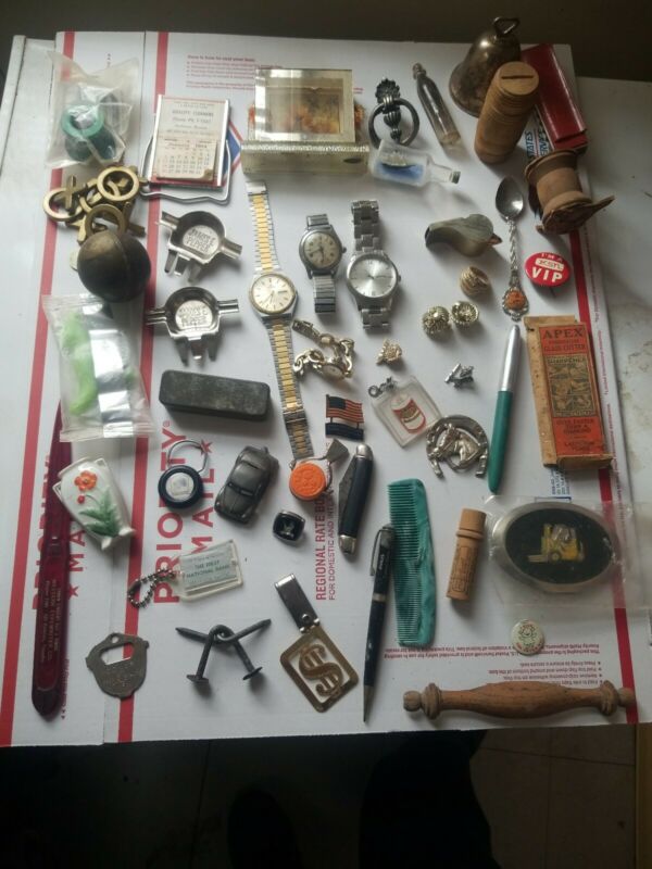 Title (ebay affiliate link): Vintage Junk Drawer Lot -pins watches keychains knife toys Antiques lot 1