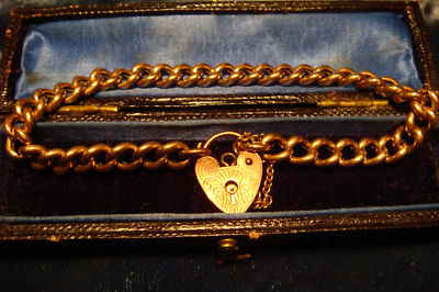 Title (ebay affiliate link): ANTIQUE 14KT.GOLD CURB BRACELET 9KT.GOLD HEART LOCK