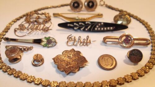 Vtg Antique Art Deco Victorian Gold Filled, Enamel, Necklace Brooch Cufflink Lot
