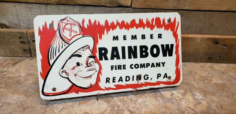 Rainbow Fire Co. Reading, Pa Berks Vintage License Plate Sunshine Beer Sign