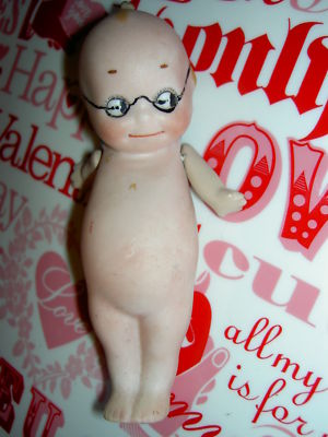 Rare~German antique bisque KEWPIE doll w/glasses, label