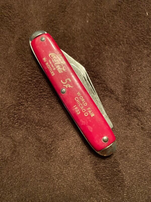 Title (ebay affiliate link): VIntage Coca Cola World Fair 1933 Chicago Double Blade Pocket Knife Red 5 Cents
