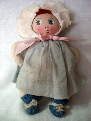 Antique cloth doll w red hair painted features