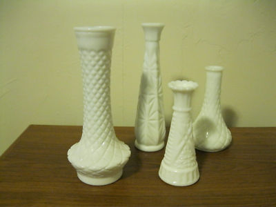 Lot of 4 Assorted White Milk Glass Bud Vases