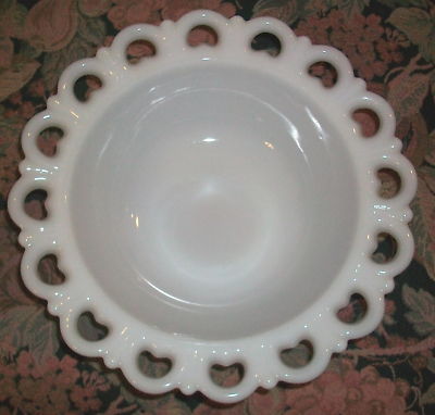 Vintage White Milk Glass Bowl with Lace Edge