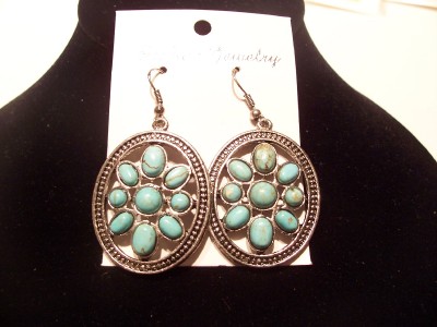 NEW,SILVER ANTIQUE STYLE TURQUOISE DANGLE EARRINGS