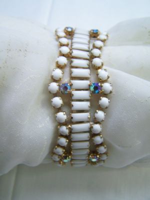 vintage Milk Glass Aurora Borealis Rhinestone BRACELET