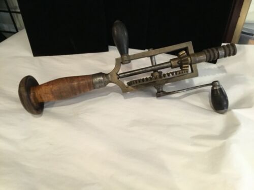 Title (ebay affiliate link): RARE ANTIQUE LARGE UNSIGNED BRASS & WOOD HANDLE HAND CRANK DRILL NO RESERVE