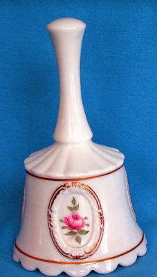 Vintage FENTON Bell Milk Glass w Rose Medallions Signed