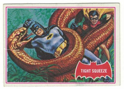 Title (ebay affiliate link): 1966 TOPPS BATMAN # 24A TIGHT SQUEEZE - USA RED BAT CARD - LOOK !!!!