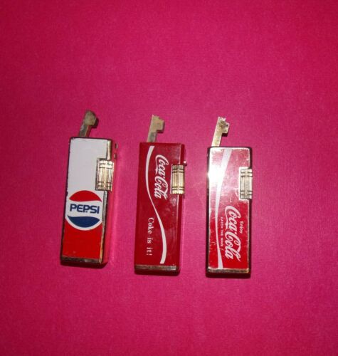 Title (ebay affiliate link): Lot of 3 Cigarette Lighters Butane 2-Vintage Coca-Cola Swoosh Reds & 1-PEPSI