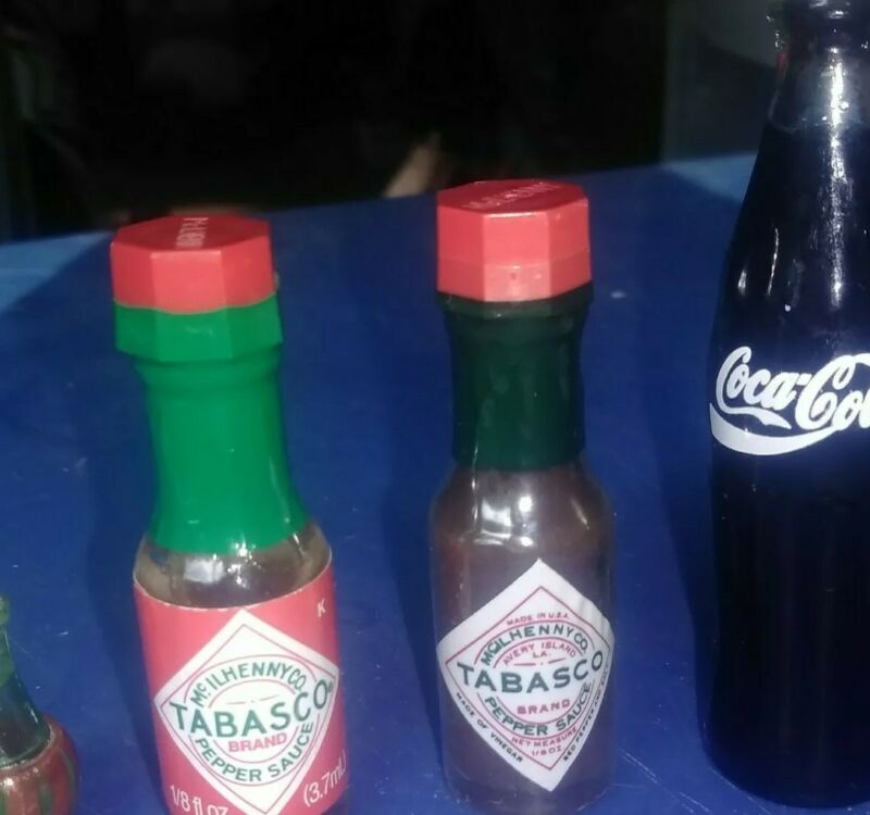 Title (ebay affiliate link): 3 Miniatures, 1 Glass Coca-Cola Bottle Filled, 2 Glass Tobasco Filled