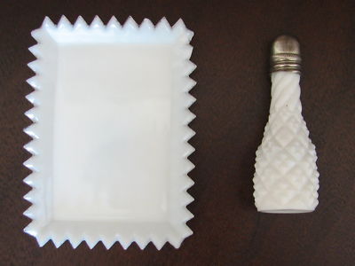 SET ~ Tiny MILK GLASS TRAY & SALT or PEPPER SHAKER
