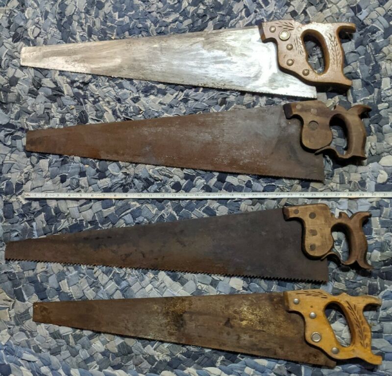 Title (ebay affiliate link): ANTIQUE VINTAGE HAND SAW LOT 4 Handsaws Disston Warranted Superior More