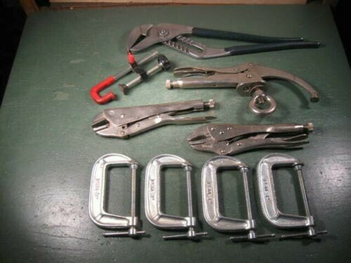 OLD USED VINTAGE WOODWORKING TOOLS VISE GRIPS & C-CLAMPS LOT