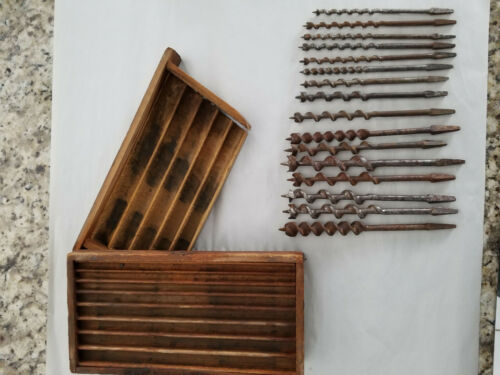 Title (ebay affiliate link): Lot of 16 Vintage Hand Auger Bits w/ Dovetail Box Sizes 7/8 - 1/4