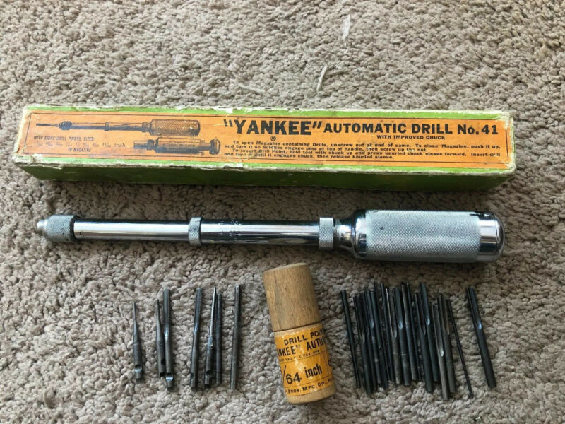 Title (ebay affiliate link): Vintage Yankee No 41 Push Drill North Brothers & 7 Drill Bits & 17 Unmarked Bits