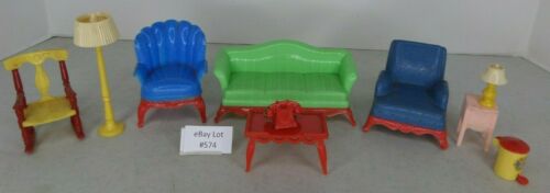 Title (ebay affiliate link): (Lot #574) Vintage Renwal Plastic Toy Dollhouse Furniture 10 Piece Living Room