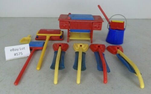 (Lot #575) Vintage Renwal Plastic Toy Dollhouse Furniture 10 Piece Sewing Vacuum