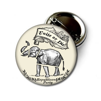 UNITE DIE REPUBLICAN ELEPHANT POLITICAL PINBACK BUTTON