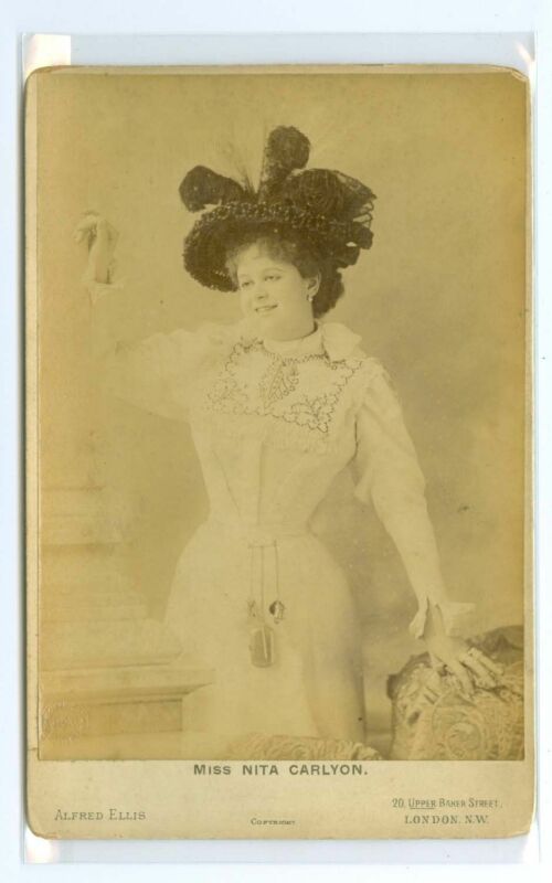 Title (ebay affiliate link): J1706~ Theater Actress Cabinet Card Miss Nita Carlyon by Alfred Ellis, London