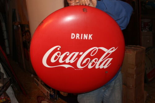 Vintage 1950''s Coca Cola Soda Pop Gas Station 24" Porcelain Metal Button Sign