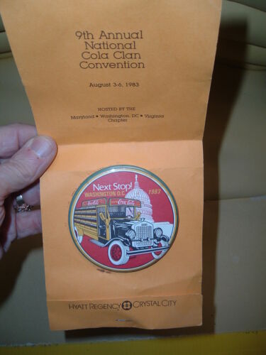 BIG Coca Cola Soda Pop Coke CONVENTION Metal BADGE PINBACK 37 yrs Old MINT