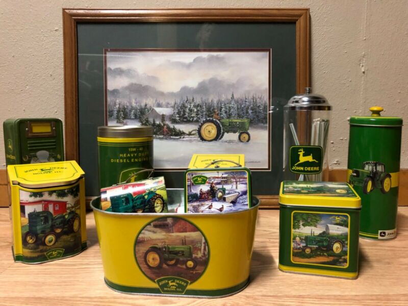 Title (ebay affiliate link): John Deere collectible tins, bank, and straw holders
