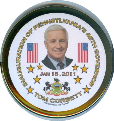 Title (ebay affiliate link): GOVERNOR TOM CORBETT INAUGURAL PIN R-PA WITH RIBBON