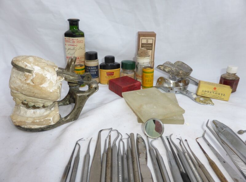 Title (ebay affiliate link): Vintage Dentist Dental Tools Model Jaw Teeth Articulator Curios Collection