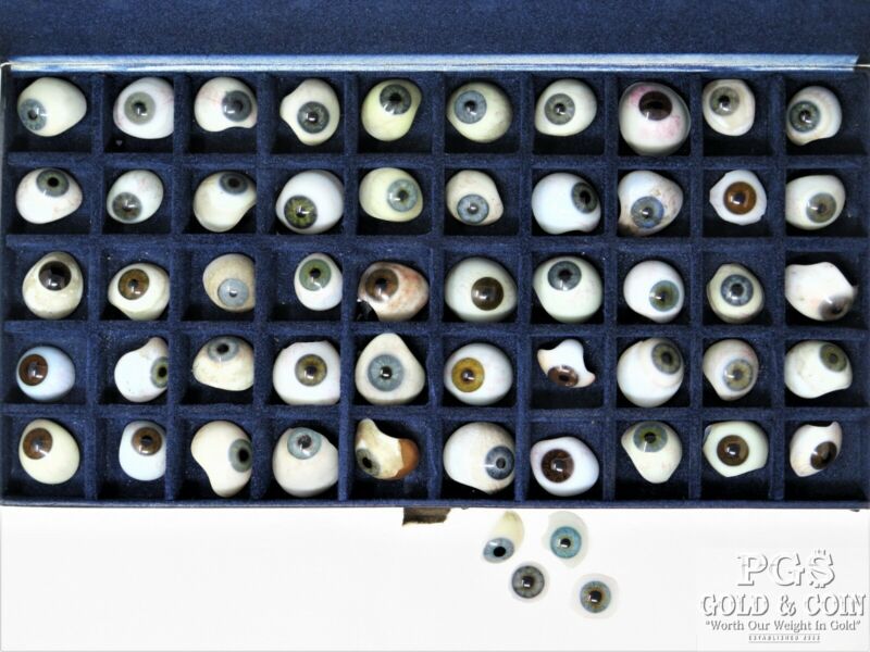 Title (ebay affiliate link): WWII 50+ Hand Blown Glass Ocular Prosthetic Human Artificial Eye Balls Iris16676