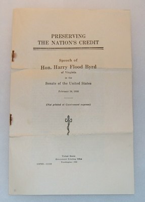 Title (ebay affiliate link): Original 1935 Speech Harry F. Byrd US Senate Va