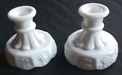 Two Paneled Grape Candlesticks Westmoreland Milk Glass