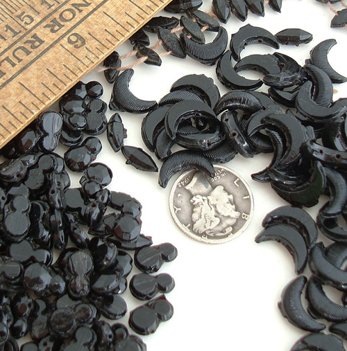 Antique Victorian French Jet Sew Ons 3 Styles Moons