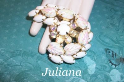 Vintage JULIANA Opalescent Milk Glass Molded Stone Pin