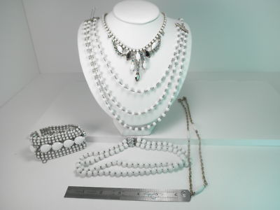 Vintage Milk Glass Jewelry LOT Bracelet Necklaces Stone