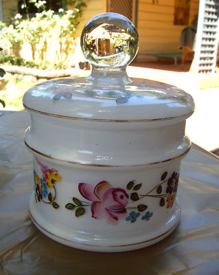 VICTORIAN HAND PAINTED LIDDED MILK GLASS JAR