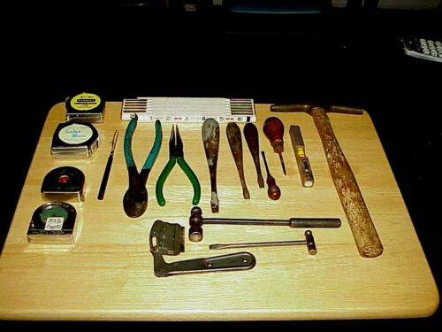 Title (ebay affiliate link): 18pc VINTAGE ANTIQUE TOOLS SCREWDRIVERS WOOD HANDLE Lot & Hammers Tapes Cutters
