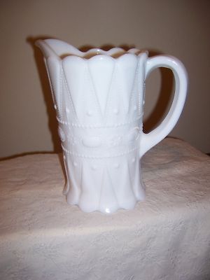 KEMPLE LACE & DEWDROP MILK GLASS PITCHER