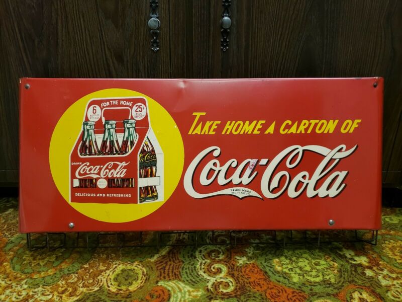 Title (ebay affiliate link): COCA COLA late 1930s paper Sack holder Sign with 6 pack COKE