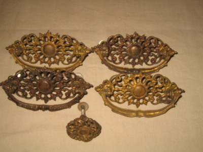 Title (ebay affiliate link): SET OF 5 ANTIQUE FURNITURE HARDWARE BRASS DRAWER PULLS