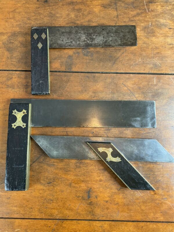 Title (ebay affiliate link): 3 Square, Vintage Ebony Handle, Brass Inlay and Steel Blade Woodworkers Squares