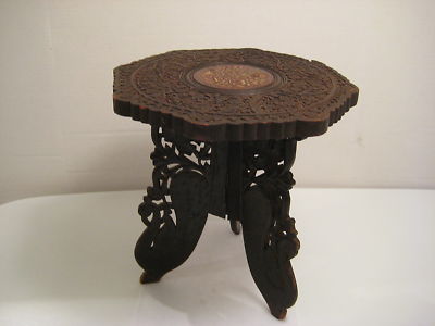 Title (ebay affiliate link): Antique Arts & Crafts Hand Carved Wood Inlaid Table
